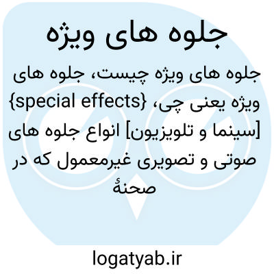 {special effects} [سینما و تلویزیون] انواع جلوه های صوتی و تصویری غیرمعمول که در صحنۀ تصویربرداری یا فیلم برداری یا در پردازشگاه ایجاد شود