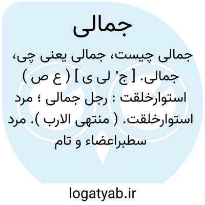 جمالی. [ ج ُ لی ی ] ( ع ص ) استوارخلقت: رجل جمالی؛ مرد استوارخلقت. ( منتهی الارب ). مرد سطبراعضاء و تام الخلقه. ( اقرب الموارد ). مردی بزرگ خلق. ( مهذب الاسماء ) ( آنندراج ). و همچنین جمل جمالی. ( منتهی الارب ) ( مهذب الاسماء ).
