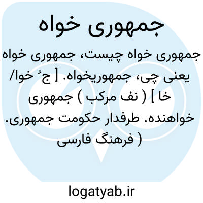 جمهوریخواه. [ ج ُ خوا/ خا ] ( نف مرکب ) جمهوری خواهنده. طرفدار حکومت جمهوری. ( فرهنگ فارسی معین ).