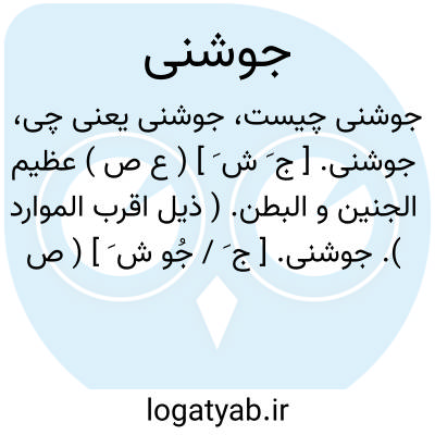 جوشنی. [ ج َ ش َ ] ( ع ص ) عظیم الجنین و البطن. ( ذیل اقرب الموارد ).