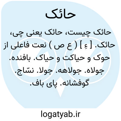 حائک. [ ءِ ] ( ع ص ) نعت فاعلی از حوک و حیاکت و حیاک. بافنده. جولاه. جولاهه. جولا. نسّاج. گوفشانه. پای باف. همگر. جشیر. جشیره. بافکار. || نعت فاعلی از حیک و حَیکان. آنکه خرامد. آنکه گرازان رود. آنکه گاه رفتن دوش و تن جنباند. آنکه گاه رفتن دوشها جنباند و زانوها فراخ نهد.
