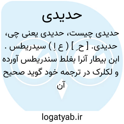 حدیدی. [ ح ِ ] ( ع اِ ) سیدریطس. ابن بیطار آنرا بغلط سندریطس آورده و لکلرک در ترجمه خود گوید صحیح آن سیدریتیس است. ( لکلرک ج 3 ص 298 و ج 1 ص 423 ).