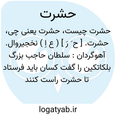 حشرت. [ ح َ رَ ] ( ع اِ ) نخجیروال. آهوگردان: سلطان حاجب بزرگ بلکاتکین را گفت کسان باید فرستاد تا حشرت راست کنند بر جانب خارمرغ که شکار خواهیم کرد. و خیل تاشان رفتند و پیاده و حشرت راست کردند و امیر روز شنبه سیزدهم این ماه سوی خروار و خارمرغ رفت به شکار و سخت شکاری نیکو کرده آمد. ( تاریخ بیهقی ص 275 ). ادیب پیشاوری در حاشیه این صفحه شرح زیر را نوشته است: و طریق این حشرت چنان است که گروهی از مردم سوار و پیاده به نخجیرگاه گرد آیند و نخجیران را بربایند و برگریزگاهها و رخنه ها پره بندند و نگذارند که نخجیر بدانسو رود و به همان راهی که خواهند انزعاج شان دهند تا بجائی که کمان داران کمین دارند، فراهم آیند دست به تیر انداختن بگشایند وبر آن زبان بستگان قیامتی راست کنند و اکنون نیز در هری و غور و کابل روزی را که روستایان باتفاق خرمنی را کوبند آن روز را حشر نامند و در اصل لغت به معنی اجتماع است و انبوهی. استاد عنصری گوید: