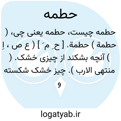 ( حطمة ) حطمة. [ ح ِ م َ ] ( ع ص، اِ ) آنچه بشکند از چیزی خشک. ( منتهی الارب ). چیز خشک شکسته و ریزه شده. ج، حِطَم.