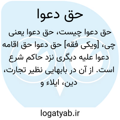 [ویکی فقه] حق دعوا حق اقامه دعوا علیه دیگری نزد حاکم شرع است. از آن در بابهایی نظیر تجارت، دین، ایلاء و قضاء سخن گفته اند.