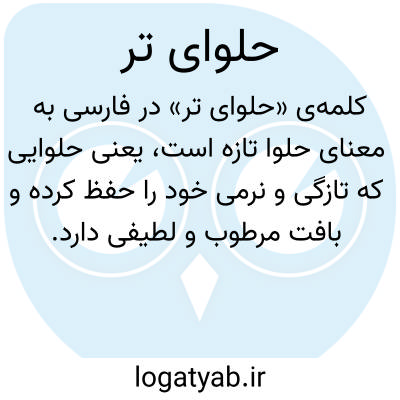 کلمه‌ی «حلوای تر» در فارسی به معنای حلوا تازه است، یعنی حلوایی که تازگی و نرمی خود را حفظ کرده و بافت مرطوب و لطیفی دارد. این واژه علاوه بر کاربرد اصلی غذایی، به صورت استعاری نیز در زبان فارسی به کار می‌رود و برای اشاره به میوه‌های شیرین و آبدار مانند سیب استفاده می‌شود، که طعم و تازگی آن‌ها تداعی‌کننده حلوای تر است. همچنین، در ادبیات و اشعار کلاسیک فارسی، «حلوای تر» کنایه‌ای است از لب‌های محبوب و معشوق، که شیرینی و لطافت آن‌ها با تازگی حلوا تشبیه می‌شود. این کاربردهای استعاری باعث شده است که واژه حلوای تر علاوه بر معنا و طعم واقعی، بار معنایی احساسی و عاشقانه نیز پیدا کند. از نظر زبان‌شناسی، این اصطلاح نشان‌دهنده پیوند میان طعم، تازگی و زیبایی است و در متون ادبی، عاشقانه و توصیفی به کار گرفته می‌شود. به طور کلی، این عبارت هم معنای غذایی دارد و هم به صورت استعاری بیانگر تازگی، شیرینی و لطافت چیزهای خوشایند و دوست‌داشتنی است.