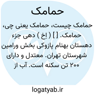 حمامک. [ ] ( اِخ ) دهی جزء دهستان بهنام پازوکی بخش ورامین شهرستان تهران. معتدل و دارای 200 تن سکنه است. آب از رودخانه جاجرود و محصول آن غلات. شغل اهالی زراعت و گله داری است. راه مالرو دارد. ( از فرهنگ جغرافیائی ایران ج 1 ).
