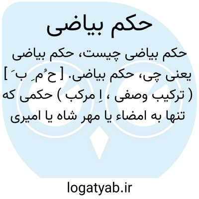 حکم بیاضی. [ ح ُم ِ ب َ ] ( ترکیب وصفی، اِ مرکب ) حکمی که تنها به امضاء یا مهر شاه یا امیری رسد و بدفاتر نگذرد، برای پنهان ماندن محتوی آن یا تسریع در ارسال و اجرای آن. صاحب غیاث گوید: یکی از اصناف حکم پادشاهی است و آن از حکم دفتری معتبر [ تر ] باشد. ( غیاث از مصطلحات ). و در تتمه برهان یا ملحقات برهان آمده است: علامی فهامی، [ مراد شیخ ابوالفضل بن شیخ مبارک ناگوری است ] در آئین اکبری نوشته که چون برخی احکام سلطنت درنگ برنمی تابد از جهت تعجیل و اخفای راز، منشور مقدس تنهابه نگین شاهی پیرایه گیرد و از دفاتر نگذرد و آن راحکم بیاضی گویند. - انتهی. در وقت عرش آشیانی، حکم بیاضی معتبرتر از احکام دفتری بود و در عهد اخلاف آن جناب کم رتبه شد و رسیدنش بنگین شاهی هم نمانده، بمهرامرا باشد، لکن از دفتر نگذرد و از این جهت کم اعتبار است. و در بهار عجم عین عبارات فوق آمده است و پس از آن گوید: نظر به این معنی، میرزا صائب فرموده: