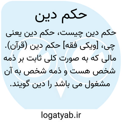 [ویکی فقه] حکم دین (قرآن). مالی که به صورت کلی ثابت بر ذمه شخص هست و ذمه شخص به آن مشغول می باشد را دین گویند. بر مدیون لازم است در موعد مقرر دین اش را اداء کند.