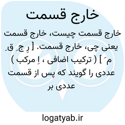 حاصل تقسیم۱ کمیتی بر کمیت دیگر. هرگاه تقسیم دقیق ممکن نباشد، باقی مانده۲ نیز خواهیم داشت. گاه به عبارتی به شکل (فرمول ۱)، حتی اگر تقسیم عملاً صورت نگیرد، خارج قسمت می گویند.فرمول ۱: dividingremainder