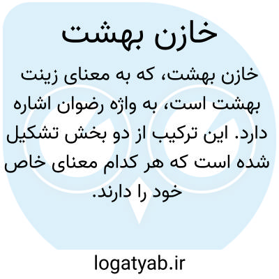 خازن بهشت، که به معنای زینت بهشت است، به واژه رضوان اشاره دارد. این ترکیب از دو بخش تشکیل شده است که هر کدام معنای خاص خود را دارند. در واقع، خازن بهشت به عنوان نگهبان و سرپرست بهشت شناخته می‌شود و مسئولیت‌های زیادی در ارتباط با بهشتیان بر عهده دارد. رضوان به عنوان نماد زیبایی و نعمت در بهشت، نشان‌دهنده خوشبختی و آرامش روحی است که در این مکان وجود دارد. این مفهوم نشان‌دهنده اهمیت و ارزش بهشت در زندگی معنوی انسان‌هاست و بیانگر آن است که بهشت، نه تنها مکانی برای پاداش، بلکه جایی برای تجربه لذت‌های حقیقی و روحانی است. در این فضا، خازن بهشت به عنوان یک دلسوز و راهنما، به بهشتیان کمک می‌کند تا از نعمت‌های الهی بهره‌مند شوند و زندگی ابدی را در آرامش و سرور تجربه کنند.