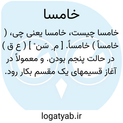 ( خامساً ) خامساً. [ م ِ سَن ْ ] ( ع ق ) در حالت پنجم بودن. و معمولاً در آغاز قسیمهای یک مقسم بکار رود.