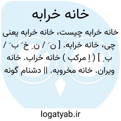 خانه خرابه. [ ن َ / ن ِ خ َ ب َ / ب ِ ] ( اِ مرکب ) خانه خراب. خانه ویران. خانه مخروبه. || دشنام گونه ای است که به خانه ای اطلاق میشود. چون: برو بابا این خانه خرابه این همه حرفها را ندارد.