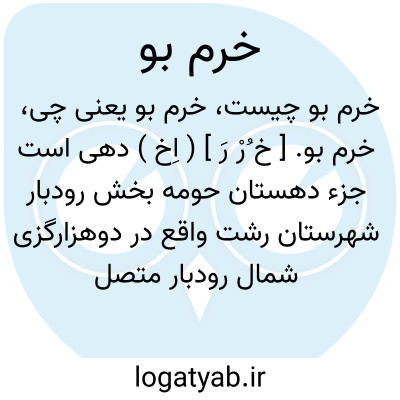 خرم بو. [ خ ُرْ رَ ] ( اِخ ) دهی است جزء دهستان حومه بخش رودبار شهرستان رشت واقع در دوهزارگزی شمال رودبار متصل به قصبه تکلیم. این ناحیه کوهستانی، معتدل و مالاریایی است. آب از رود دوگاهه. محصول آن غلات و زیتون و شغل اهالی زراعت و مکاری است. ( از فرهنگ جغرافیائی ایران ج 2 ).