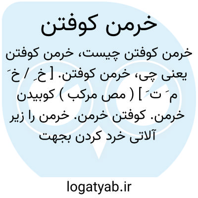 کوبیدن خرمن کوفتن خرمن خرمن را زیر آلاتی خرد کردن بجهت خارج کردن دانه های آن از قسمتهای دیگر.