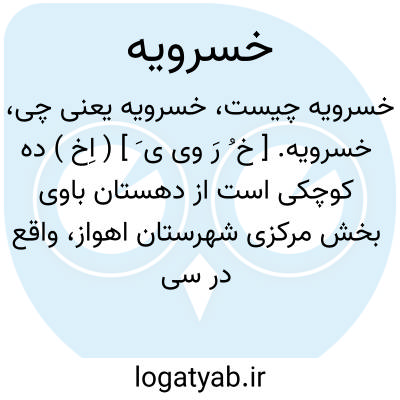 خسرویه. [ خ ُ رَ وی ی َ ] ( اِخ ) ده کوچکی است از دهستان باوی بخش مرکزی شهرستان اهواز، واقع در سی هزارگزی جنوب خاوری اهواز نزدیک ایستگاه راه آهن خسرویه. ( از فرهنگ جغرافیائی ایران ج 6 ).