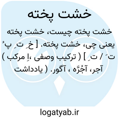 خشت پخته. [ خ ِ ت ِ پ ُ ت َ / ت ِ ] ( ترکیب وصفی،اِ مرکب ) آجر، آجُرَّه، آگور. ( یادداشت بخط مؤلف ). قِرمید. ( دهار ). طوب. ( منتهی الارب ). مقابل خشت خام. چون خشت خام را در کوره گذارند و حرارت دهند پخته شود این خشت پخته را آجر می نامند: با سنگ و خشت پخته ریخته کردند. ( تاریخ بیهقی ). بفرمان او این پل را از خشت پخته ساختند. ( تاریخ بخارای نرشخی ).