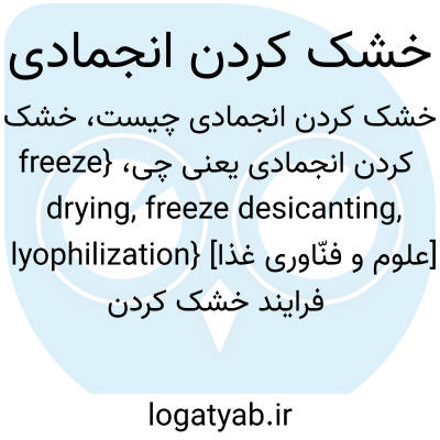 {freeze drying, freeze desicanting, lyophilization} [علوم و فنّاوری غذا] فرایند خشک کردن مواد غذایی پس از انجماد سریع و تصعید یخ آن در خلأ