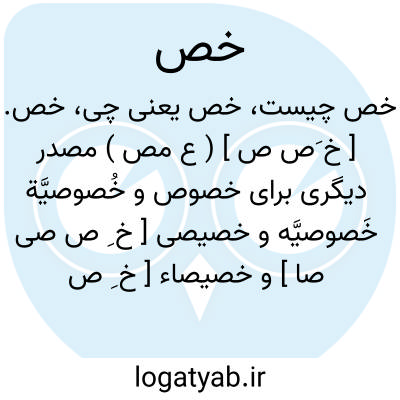 خص. [ خ ُص ص ] ( ع اِ ) خانه نئین. ( از منتهی الارب ) ( از تاج العروس ) ( از اقرب الموارد ).ج، خِصاص، خُصوص، خصاص. || خانه ای که از چوب مسقف بود. ( منتهی الارب ) ( از لسان العرب ) ( از اقرب الموارد ) ( از تاج العروس ). ج، خصاص خصوص، اخصاص.