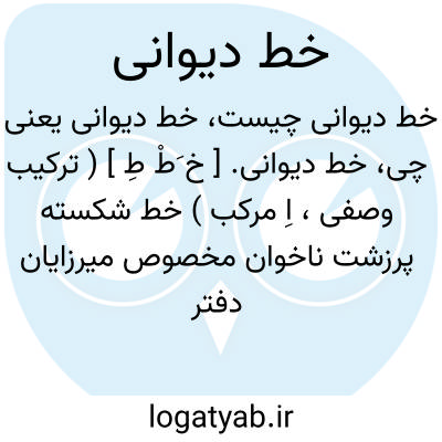 خط دیوانی. [ خ َطْ طِ ] ( ترکیب وصفی، اِ مرکب ) خط شکسته پرزشت ناخوان مخصوص میرزایان دفتر ایران. ( آنندراج ). خط شکسته اهل دفتر. ( غیاث اللغات ):
