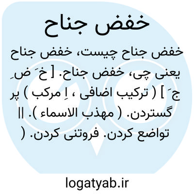 خفض جناح. [ خ َ ض ِ ج َ ] ( ترکیب اضافی، اِ مرکب ) پر گستردن. ( مهذب الاسماء ). || تواضع کردن. فروتنی کردن. ( یادداشت بخط مؤلف ).
