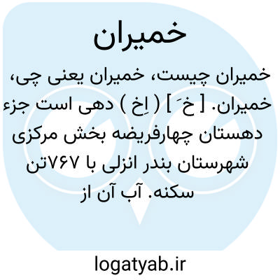 خمیران. [ خ َ ] ( اِخ ) دهی است جزء دهستان چهارفریضه بخش مرکزی شهرستان بندر انزلی با 767تن سکنه. آب آن از چاف رود و محصول آن برنج و توتون سیگار و ابریشم و صیفی کاری است. شغل اهالی زراعت و ذغال فروشی و راه مالرو است و با قایق نیز می توان بدانجا رفت و آمد کرد. ( از فرهنگ جغرافیایی ایران ج 2 ).