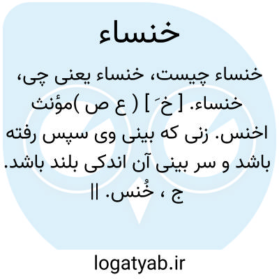 خنساء. [ خ َ ] ( ع ص )مؤنث اخنس. زنی که بینی وی سپس رفته باشد و سر بینی آن اندکی بلند باشد. ج، خُنس. || ماده گاو وحشی ( این کلمه صفت است برای ماده گاو وحشی ). ( منتهی الارب ) ( از تاج العروس ) ( از لسان العرب ). ج، خُنس.
