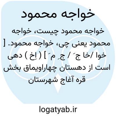 خواجه محمود. [ خوا /خا ج َ / ج ِ م َ ] ( اِخ ) دهی است از دهستان چهاراویماق بخش قره آغاج شهرستان مراغه. این ده کوهستانی و معتدل و دارای 128 تن سکنه است. آب آن از چشمه و محصول آن غلات و شغل اهالی زراعت و از صنایع دستی جاجیم بافی و راه مالرو است. ( از فرهنگ جغرافیایی ایران ج 4 ).