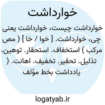 خوارداشت. [ خوا / خا ] ( مص مرکب ) استخفاف. استحقار. توهین. تذلیل. تحقیر. تخفیف. اهانت. ( یادداشت بخط مؤلف ):