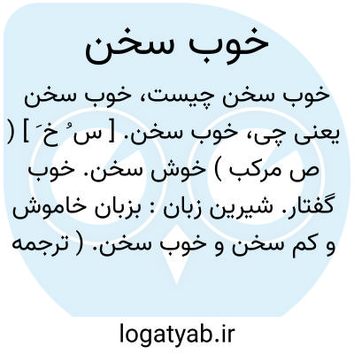 خوب سخن. [ س ُ خ َ ] ( ص مرکب ) خوش سخن. خوب گفتار. شیرین زبان: بزبان خاموش و کم سخن و خوب سخن. ( ترجمه طبری بلعمی ).