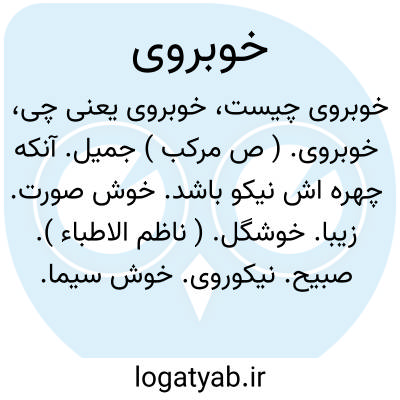 ( خوبرو ی ) ( صفت ) آنکه چهره اش زیبا باشد زیبا نیکو روی. جمع: خوبرویان.