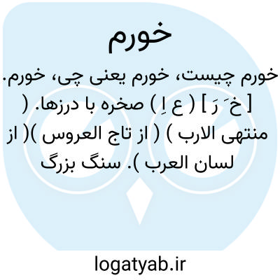خورم. [ خ َ رَ ] ( ع اِ ) صخره با درزها. ( منتهی الارب ) ( از تاج العروس )( از لسان العرب ). سنگ بزرگ پرشکاف. ( ناظم الاطباء ).