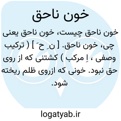 خون ناحق. [ ن ِ ح َ ] ( ترکیب وصفی، اِ مرکب ) کشتنی که از روی حق نبود. خونی که ازروی ظلم ریخته شود. قتلی که مقتول آن مظلوم باشد.