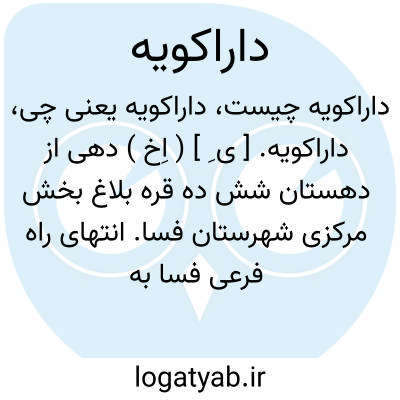 داراکویه. [ ی ِ ] ( اِخ ) دهی از دهستان شش ده قره بلاغ بخش مرکزی شهرستان فسا. انتهای راه فرعی فسا به داراکویه. شصت و یک هزارگزی خاور فسا. جلگه. سکنه 269 تن. آب از قنات. محصول آنجا غلات، حبوبات، برنج است. شغل اهالی زراعت،قالی و گلیم بافی. ( از فرهنگ جغرافیایی ایران ج 7 ).