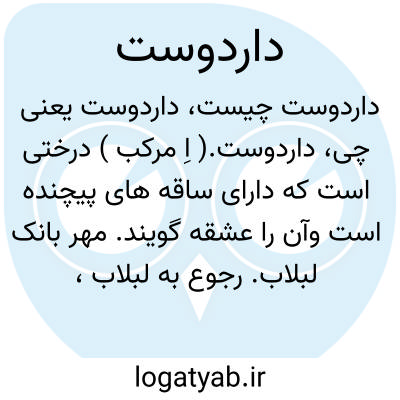 داردوست.( اِ مرکب ) درختی است که دارای ساقه های پیچنده است وآن را عشقه گویند. مهر بانک لبلاب. رجوع به لبلاب، عشقه، عشق پیچان و مهربانک شود. || و در تداول جنگلبانی بر همه انواع درختان پیچنده اطلاق شود.
