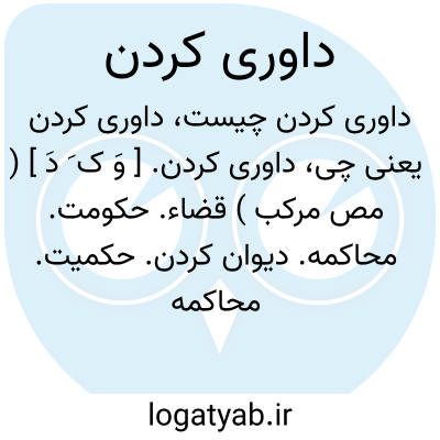 داوری کردن. [ وَ ک َ دَ ] ( مص مرکب ) قضاء. حکومت. محاکمه. دیوان کردن. حکمیت. محاکمه کردن. یکسو نمودن میان نیک و بد. المخاصمة. الخصام. ( تاج المصادر بیهقی ). فصل. ( دهار ): نخستین روز که جمشید به پادشاهی بنشست و داوری کرد همه خلق گرد آمدند و آن روز را نوروز نام کرد و هر سه ماهی همچنین به داوری بنشستی تا هفتصد سال ازین گونه بگذشت و اندرین کار و مدت هرگز بیماری و دردسری نبودش. ( ترجمه تاریخ طبری بلعمی ). ولیدبن مغیره پیرتر بود ایشانرا از پیکار بازداشت و گفت بر آن باشید که هر که نخست بدین مزگت آید او را حاکم کنیم تا میان ما داوری کند. و بداوری او بسنده باشیم. ( ترجمه تاریخ طبری بلعمی ).