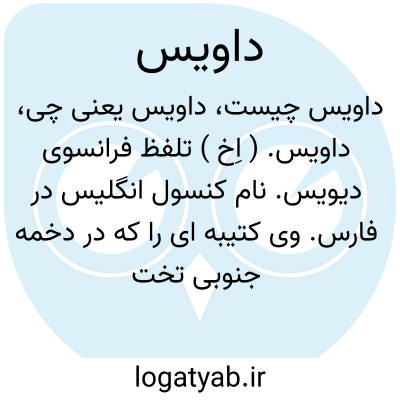 داویس. ( اِخ ) تلفظ فرانسوی دیویس. نام کنسول انگلیس در فارس. وی کتیبه ای را که در دخمه جنوبی تخت جمشید واقع بسه زبان است کشف کرده است. رجوع به ایران باستان ج 2 ص 1458 و 1459 شود.