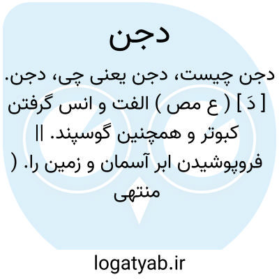 دجن. [ دُ ج ُن ن ] ( ع ) ج ِ دُجنة. || تاریکی. || ابر تاریک برهم نشسته بی باران. || فروپوشیدگی ابر به تاریکی و تراکم. ( منتهی الارب ).