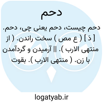 دحم. [ دَ ] ( ع مص ) سخت راندن. ( از منتهی الارب ). || آرمیدن و گردآمدن با زن. ( منتهی الارب ). بقوت گردآمدن. ( زوزنی )( تاج المصادر بیهقی ). || صاحب نشوء اللغةگوید: مدح چون قلب شود حمد گردد و چون بار سوم قلب شود حدم گردد و در مرتبه چهارم بصورت دحم درآید و در مرحله پنجم صورت دمح پذیرد. ( نشوءاللغة ص 130 ).