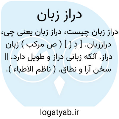 دراززبان. [ دِ زَ ] ( ص مرکب ) زبان دراز. آنکه زبانی دراز و طویل دارد. || سخن آرا و نطاق. ( ناظم الاطباء ). || آنکه به صراحت هرچه خواهد بگوید و از کس نهراسد. گستاخ در گفتار. ( یادداشت مرحوم دهخدا ): اگر خواهی دراززبان باشی کوتاه دست باش. ( منسوب به انوشروان از قابوسنامه ). || معربد و شورانگیز. ( ناظم الاطباء ): سلیطة؛ زن دراززبان. ( از مهذب الاسماء ) ( زمخشری ). سَلَطانَة، سِلِطانَة و سِلقَة؛ زن دراززبان. سَلعَف و سَلعَفَة و سَلفَع و سَلفَعَة؛ زن دراززبان بی باک شوخ روی. ( منتهی الارب ). سَلاطة؛ دراززبان گردیدن. ( از منتهی الارب ).