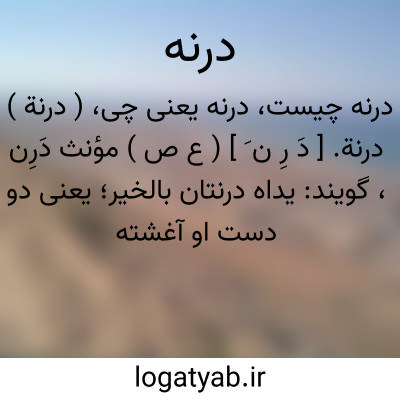 ( درنة ) درنة. [ دَ رِ ن َ ] ( ع ص ) مؤنث دَرِن، گویند: یداه درنتان بالخیر؛ یعنی دو دست او آغشته به خیر است. ( از اقرب الموارد ) ( از ناظم الاطباء ). رجوع به دَرِن شود.