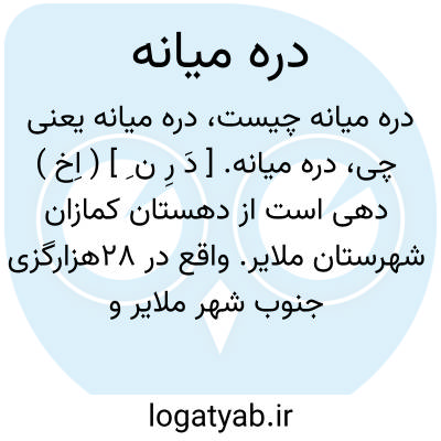 دره میانه. [ دَ رِ ن ِ ] ( اِخ ) دهی است از دهستان کمازان شهرستان ملایر. واقع در 28هزارگزی جنوب شهر ملایر و 21 هزارگزی راه شوسه ٔملایر به اراک، با 850 تن سکنه. آب آن از قنات و راه آن مالرو است. این ده در دو محل بفاصله یک هزارگز واقع و به دره میانه بالا و پائین مشهور است و سکنه بالا 62 تن می باشد. ( از فرهنگ جغرافیایی ایران ج 5 ).