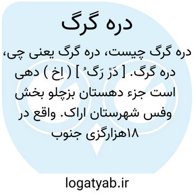 دره گرگ. [ دَرْ رَ گ ُ] ( اِخ ) دهی است از دهستان دره صیدی بخش اشترینان شهرستان بروجرد. واقع در 9هزارگزی شمال خاوری اشترینان و کنار راه مالرو دره چنار به اشترینان با 2175 تن سکنه. ( طبق سرشماری 1335 هَ. ش. ) آب آن از قنات و راه آن مالرو است. ( از فرهنگ جغرافیایی ایران ج 6 ).