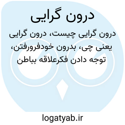 {introversion} [روان شناسی] توجه فرد به افکار و احساس خویش به جای تمایل به ارتباط با جهان بیرون و تعامل اجتماعی