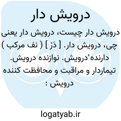 درویش دار. [ دَرْ ] ( نف مرکب ) دارنده ٔدرویش. نوازنده درویش. تیماردار و مراقبت و محافظت کننده درویش: و مردمش [ مردم همدان ] غریب دوست باشند و درویش دار. ( مجمل التواریخ و القصص ).