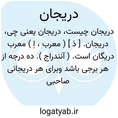 دریجان. [ دَ ] ( معرب، اِ ) معرب دریگان است. ( آنندراج ). ده درجه از هر برجی باشد وبرای هر دریجانی صاحبی از کواکب سبعه هست و میان ایران و روم و هند در ارباب آنها اختلاف باشد. ( یادداشت مرحوم دهخدا ). قانونی در علم هیئت که در آن صور و اشکال فلکی را به سه طبقه تقسیم کرده اند. ( ناظم الاطباء ). ادرجان. وجه. دهج. صورت. و رجوع به دریگان شود.