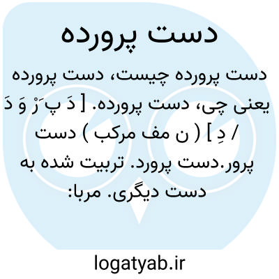 دست پرورده. [ دَ پ َرْ وَ دَ / دِ ] ( ن مف مرکب ) دست پرور.دست پرورد. تربیت شده به دست دیگری. مربا: دست پرورده ٔفلان کس بودن؛ صنیع فلان بودن. تربیت شده فلان بودن.