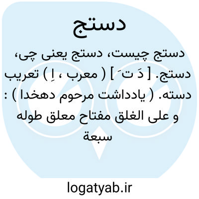 دستج. [ دَ ت َ ] ( معرب، اِ ) تعریب دسته. ( یادداشت مرحوم دهخدا ): و علی الغلق مفتاح معلق طوله سبعة أذرع له أربعةعشر ( کذا ) دندانکة أکبر من دستج الهاون.( معجم البلدان ذیل کلمه سد یأجوج و مأجوج ). و تلقی [ برجل الغراب ] فی هاون مجر... و تدق بدستج خشب دقاً ناعماً. ( ابن البیطار ذیل کلمه رجل الغراب ). و تدق بدستج خشب شکله شکل دستج الهاون. ( دزی ج 1 ص 441 ).