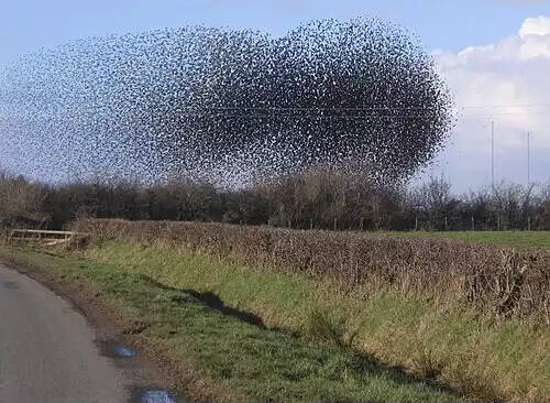 شباهت هایی با رفتار انبوه ماهی ها، رفتار ازدحامی در حشرات و رفتار گله ای جانوران خشکی وجود دارد. در طول ماه های زمستان، سارها به خاطر جمع شدن در گله های بزرگ صدها تا هزاران نفری شناخته می شوند، زمزمه هایی که وقتی به طور کلی پرواز می کنند، نمایش های بزرگی از الگوهای چرخشی جذاب را در آسمان بالای تماشاگران به نمایش می گذارند.