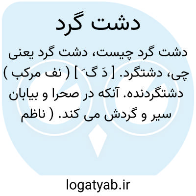 دشتگرد. [ دَ گ َ ] ( نف مرکب ) دشتگردنده. آنکه در صحرا و بیابان سیر و گردش می کند. ( ناظم الاطباء ). دشت پیما. دشت سیر. دشت نورد.